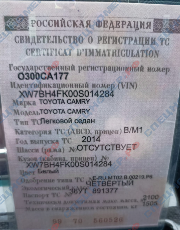 | Год выпуска ТС | 2014 |